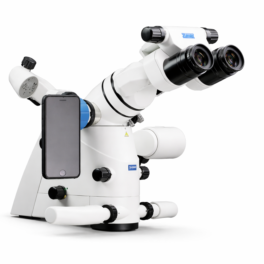 El Easy 360 Mobile Phone Adapter de Zumax permite acoplar tu smartphone al microscopio de forma rápida y estable, facilitando la grabación de vídeos y la captura de imágenes clínicas en alta calidad. Una solución práctica para documentación, formación y comunicación con el paciente, sin necesidad de equipos fotográficos adicionales.